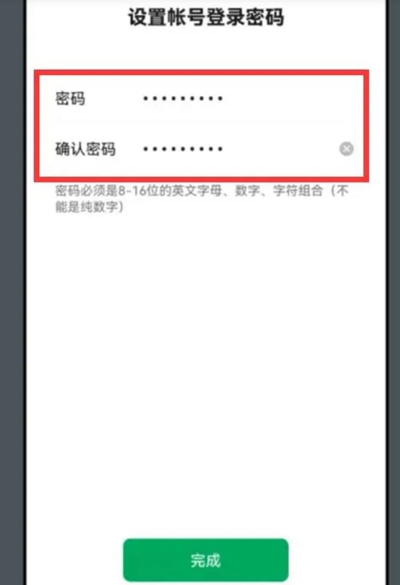 10、接着我们就会进入账号密码的设置界面中,我们设置好后点击完成就可以了。