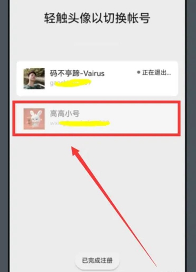 11、完成上述步骤之后我们就可以在切换账号页面中看见自己的小号了。