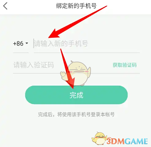 3、输入新的手机号与验证码后点击完成即可
