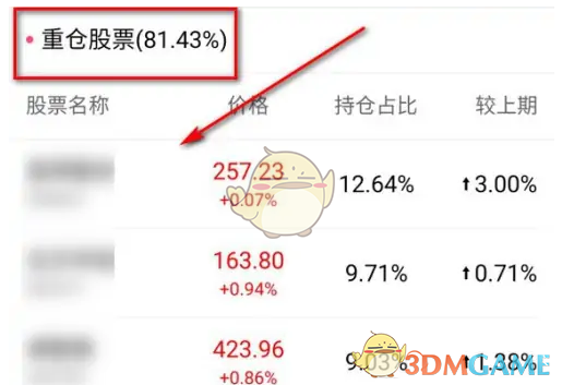 4、下拉可以查看基金的“重仓股票”情况,如下图