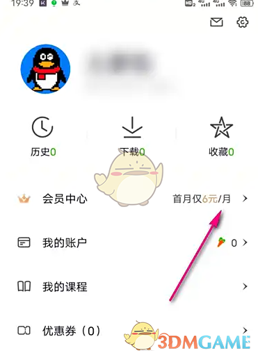 2、进入个人中心,点击会员中心右侧箭头图标。