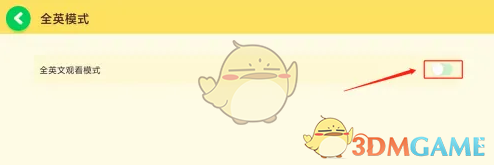 4、进入全英模式,点击【全英文观看模式】右侧按钮开启。