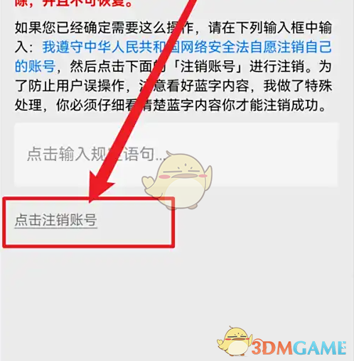 3、进入注销账号界面,阅读温馨说明,点击【点击注销账号】。