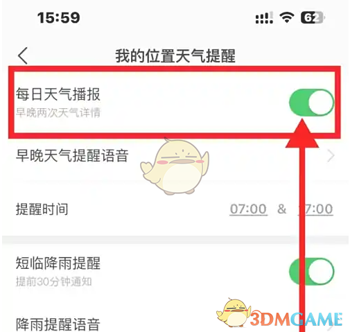 3、进入页面,点击每日天气播报,后侧按钮关闭即可。