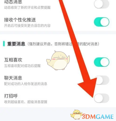 打开青藤之恋APP,点击右下角“我的”进入个人中心,找到并点击“设置”选项,在设置页面中选择“消息通知”,将“打招呼消息”右侧的开关开启,即可接收其他用户发来的打招呼消息提醒,不错过任何心动瞬间。