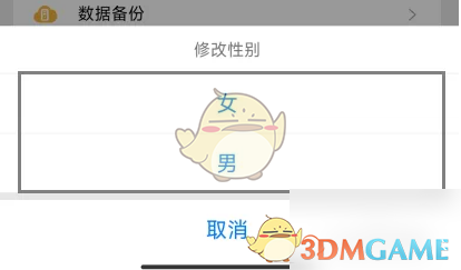 4、在修改性别窗口中,选择【男】或者【女】,完成性别修改。