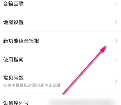 2、在新功能语音播报处,点击右侧箭头图标。