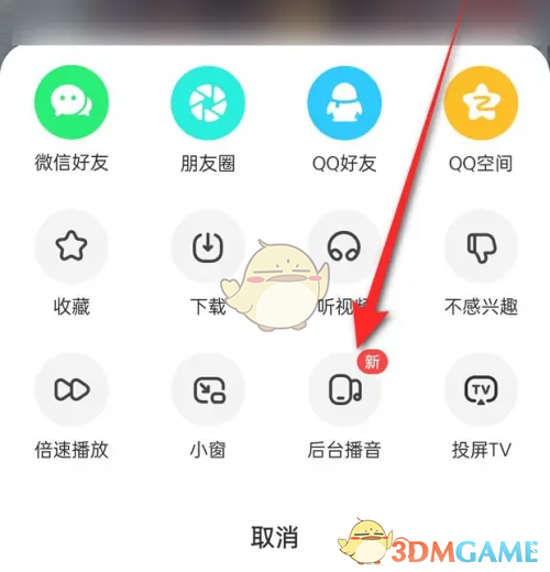 2、当“后台播音”图标处于选中红色状态时即表示此时视频切换至后台时仍然会播放声音,此时点击该图标。