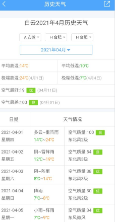 3、打开“历史天气”页面后,即可查看到当地的历史天气。见下图