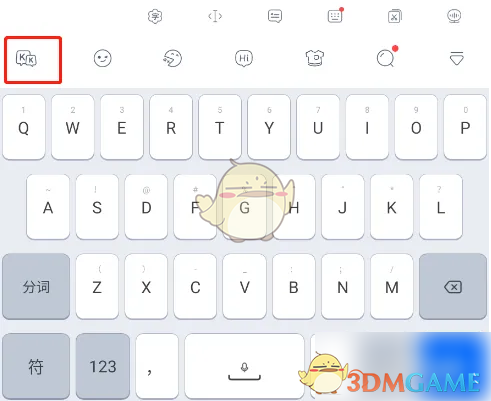 1、首先打开KK键盘app,如下图,选择界面左上方的“kk”图标,点击打开