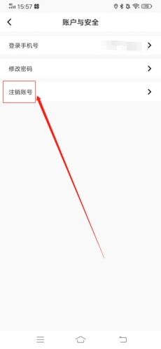 2、在这里我们就能看到下方的“注销账号”选项了,点击它;