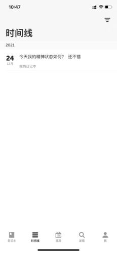 4、在首页下方的时间线页面,可以看到每天记录的日记。