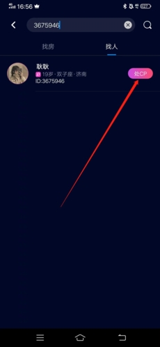 在搜索界面输入目标用户的昵称或专属ID,点击搜索按钮进行查询。系统支持模糊匹配,即使记不全对方账号也能顺利找到。确认搜索结果后,点击用户信息旁的"处CP"按钮即可发送好友请求。