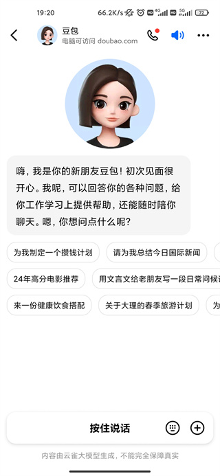 3、成功登录后,即可通过下方语音输入框与豆包进行互动;