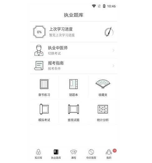 首先打开中医通APP,在主界面中找到并点击【执业题库】图标,进入题库功能页面。这是访问收藏内容的第一步,也是整个流程的起点。