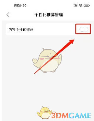 进入个性化推荐管理界面,点击【内容个性化推荐】右侧按钮关闭。