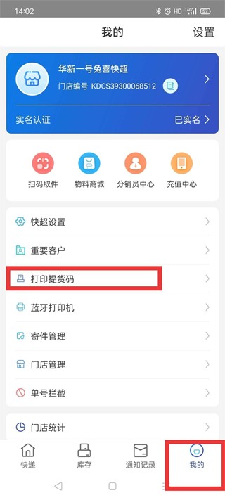 2、开启入库同步打印功能,连接好打印机后,每次入库都会自动打印对应包裹的提货码,并将其张贴上去。
