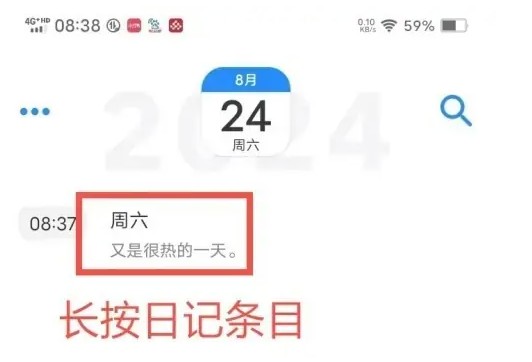 打开极简日记APP首页,长按需要删除的日记条目。系统会智能识别长按动作,此时请注意保持手指稳定约1秒钟。