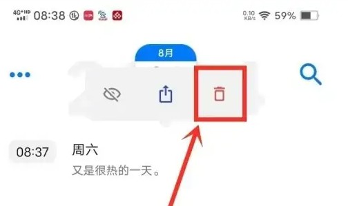 在弹出菜单栏中,找到并点击红色标注的【删除按钮】。建议在操作前再次确认所选日记内容,避免误删重要记录。