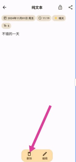 首先在吉游*戏小编推荐的版本中安装好软件,打开榴莲日记APP后,点击目标日记进入详情页。这个界面隐藏着关键功能入口——底部不起眼的删除按钮往往被用户忽略。点击后会弹出二次确认窗口,这是开发者为防止误操作设置的保护机制。