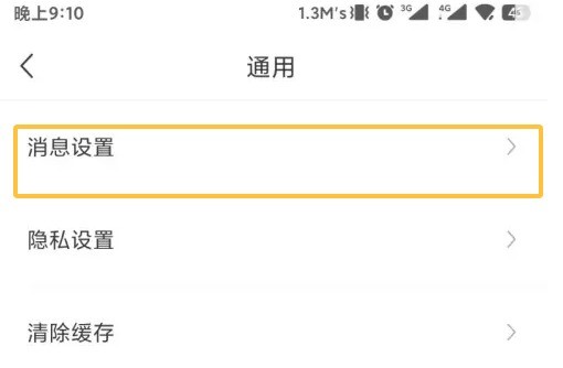 在通用设置界面中找到消息设置选项,点击后进入消息设置界面。