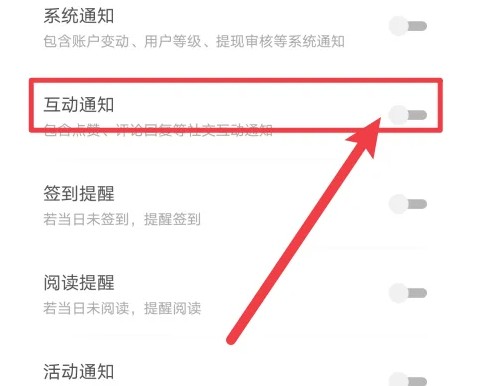 进入推送通知界面,开启【互动通知】即可,如图所示。