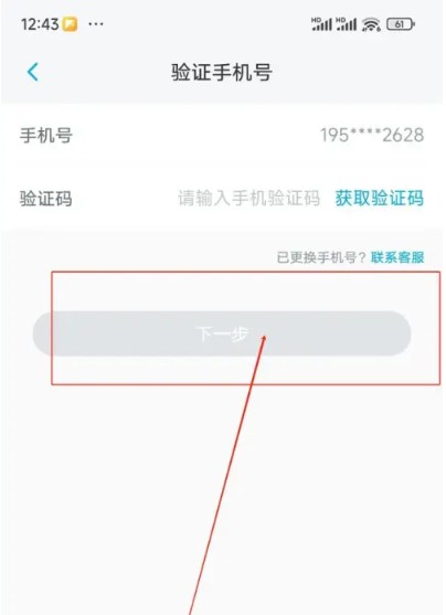 在跳转的新界面中输入验证码后,点击"下一步"