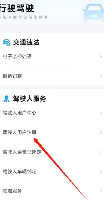 第三步:页面加载完成后,直接点击【驾驶人用户注册】按钮,根据系统提示完成身份验证和信息填写即可。