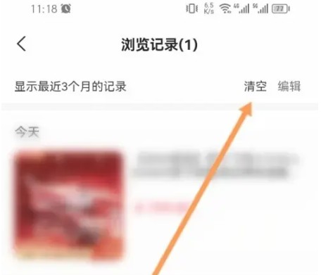 进入浏览记录页面,点击右上角的清空
