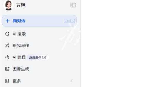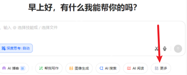 1、首先进入豆包网页版,然后点击中间的【更多】按钮。