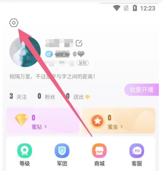 进入蜜疯直播点击设置
