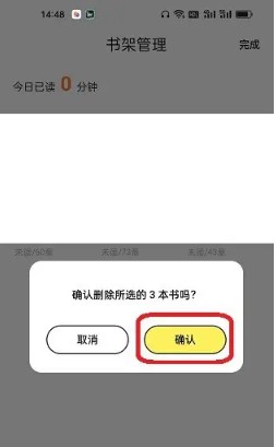 最后在确认删除页面仔细核对提示信息,确认无误后点击【确认】按钮,您的书架就会立即被清空。需要注意的是,这个操作不可逆,请谨慎使用。