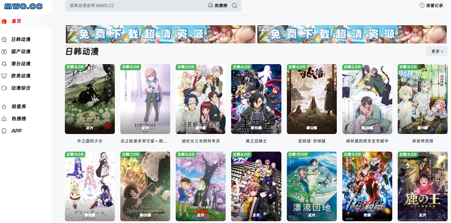 对于动漫爱好者来说,找到资源丰富、画质清晰且完全免费的在线观看平台并非易事。漫窝动漫网凭借其海量的动漫资源库和无需注册的便捷服务,已成为众多用户追番的首选平台。该站不仅提供1080P高清画质,更以极速加载和每日更新的内容质量,在同类平台中脱颖而出。