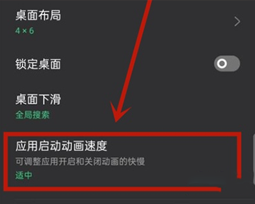 3、然后找到并打开“应用启动动画速度”设置。