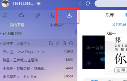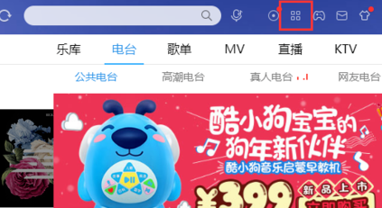 5、点击酷狗音乐上方的工具栏。