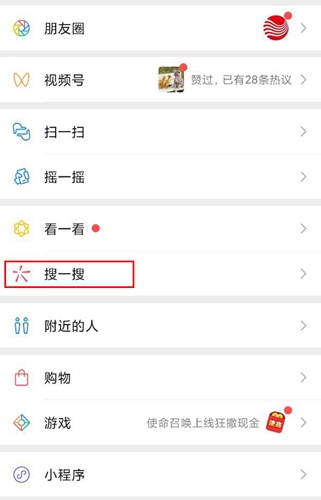 1、打开微信找到搜一搜。