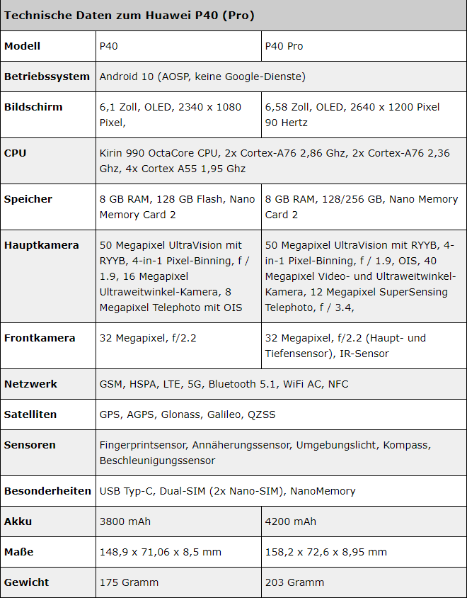 四、华为P40参数表:
