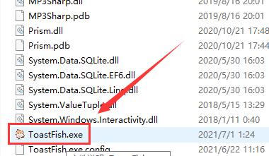 2、解压出来后,进入文件夹中,能够看到一堆文件,拉到最下面,找到“ToastFish.exe”双击打开。