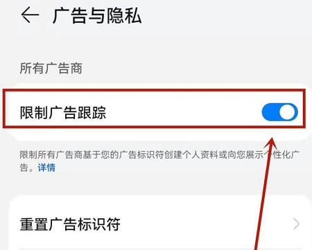 4、最后将“限制广告跟踪”后面的开关关闭即可。