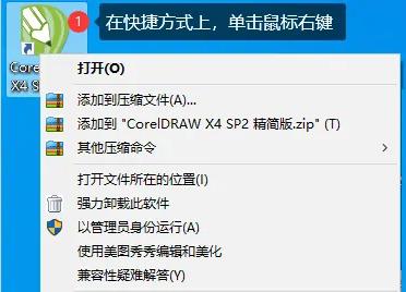 1、首先右击桌面的cdrx4软件。