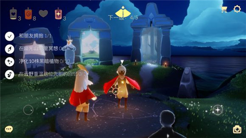 3、玩家每献祭四个小人就可获得一个完整的升华蜡烛,重生之后用升华蜡烛,在时光门前的星盘解锁任意先祖树的高级选项,就可以得到永久光之翼。
