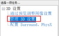 4、接着回到左上角3D设置,选择进入“管理3D设置”