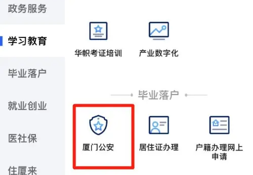 第二步:在服务页面点击【厦门公安】。