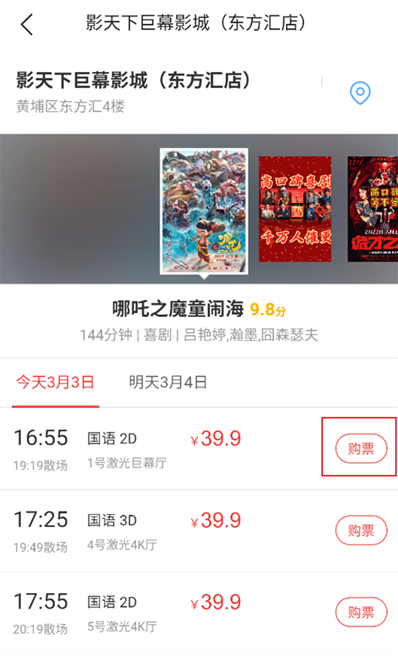 4、进入地方影城后,点击后面的“购票”即可。