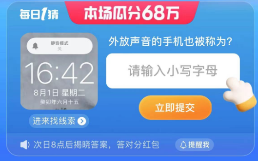 淘宝大赢家每日一猜的答案来啦,8.2日的题目是外放声音的手机也被称为?”,今日的题目是和手机有关的,外放声音的手机也被称为?这个答案是什么,相信很多用户都不了解这个和手机相关的问题,下面就来介绍下外放声音的手机也被称为答案是什么。