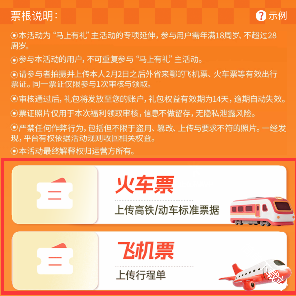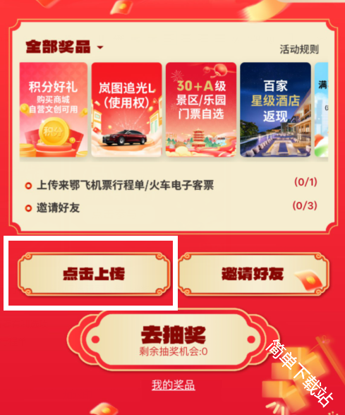 3、可以看到上传来鄂飞机票行程单/火车电子客票可以参与抽奖
