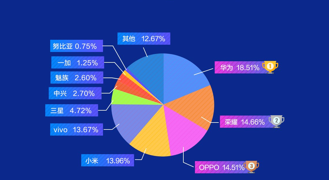 华为以18.51%的占比胜出,看来华为还是很强劲的。