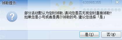 3、登录后点击左侧的“领取道具”。只是单独领取某一个活动的道具的话就选择“活动选择”,如果全部都要领取的话就选择“开始领取”。这里我们选择的是开始领取。点击“是”。