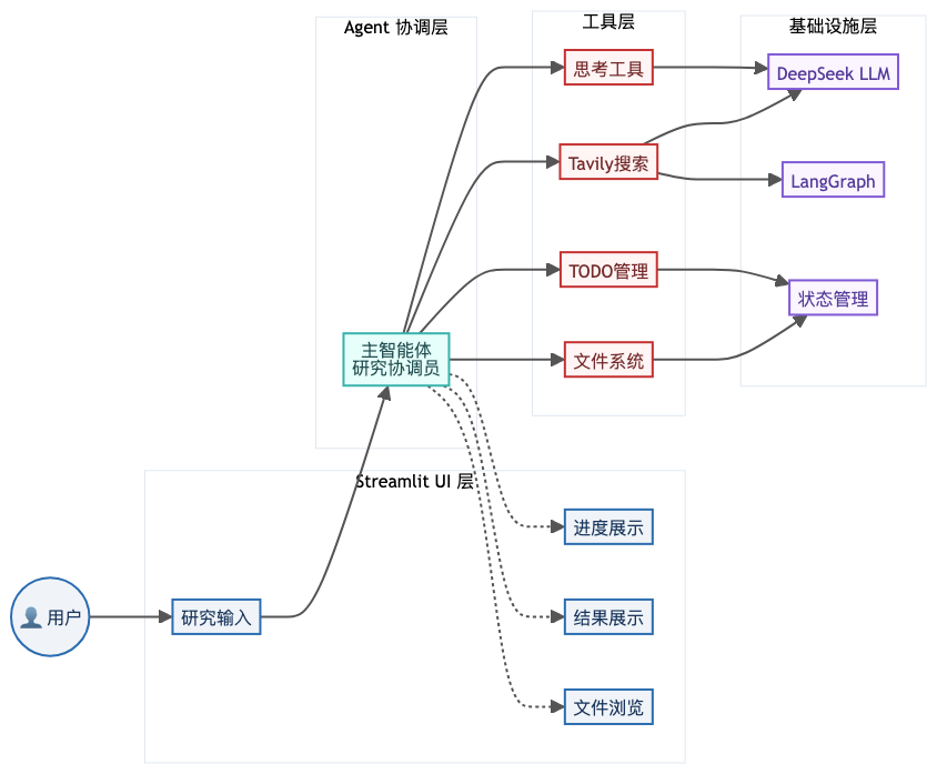 每个任务都有明确的状态:pending(待处理)、in_progress(进行中)、completed(已完成),通过 update_todo_status 工具实时更新。这种结构化的任务管理方式,让用户能够清晰看到研究进度。