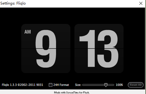 使用fliqlo作为屏保时,可以选择小时制和调整大小,还可以设置静止多长时间后开启屏保。在全屏屏保模式下,fliqlo翻页时钟屏保以白色的数字搭配黑色的背景,通过翻页来表示时间的改变。
